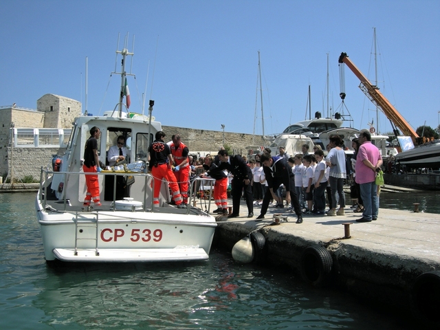 Protagonisti della giornata, 50 alunni del secondo circolo della scuola Petronelli di Trani. Accompagnati dalla dirigente Giuseppina Tota, i giovani studenti hanno potuto apprendere le regole per un corretto approccio al mare nel rispetto delle norme che garantiscono una tranquilla navigazione sia per i bagnanti che per i diportisti. In più, hanno potuto partecipare ad una simulazione di soccorso in mare, scoprendo le varie fasi della scala del soccorso che vengono applicate in situazioni di emergenza.