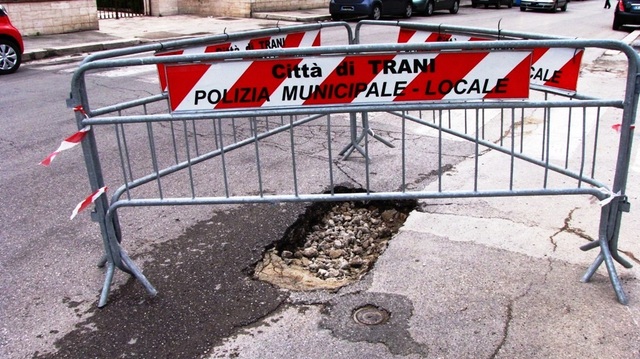 Ed infatti, tanto per gradire, in via Malcangi subito è arrivata prima messa in sicurezza. Come le foto documentano, infatti, la strada ha ceduto inaspettatamente e considerevolmente fra l’area di servizio e l’ex sede del disciolto circolo Unione. Le tre tranesenne isoleranno la zona nell’attesa della riparazione.