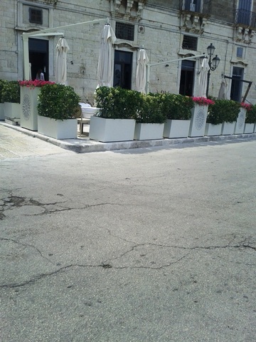 Come vedete dalla foto, in alcune zone le fioriere per "marcare il territorio" sono poste al limite del marciapiede, impedendo completamente l'accesso ad un pedone. Forse è un modo per far capire ai "normodotati" come ci si sente ad essere costretti a camminare per strada, così come accade alle persone in carrozzina che tra l'altro su questo marciapiede non avrebbero in ogni caso potuto passeggiare in quanto non vi è alcuno scivolo.