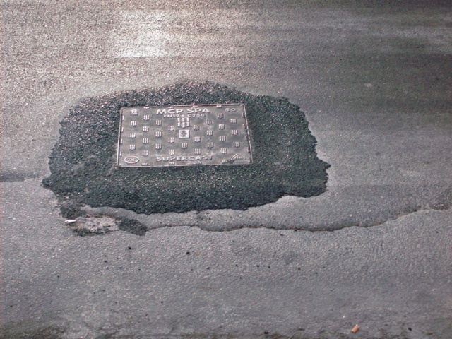 Il tombino in effetti saltava dopo ogni passaggio di auto e stava pian piano causando la rottura di tutto l'asfalto nei dintorni. Si è riparata questa situazione con altro asfalto "coprente".