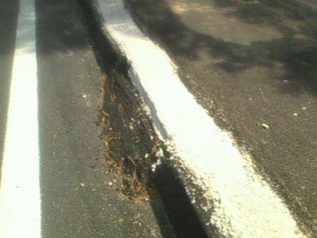 Come potrete notare, non solo la ditta appaltatrice non ha provveduto a riparare il cordolo ma, addirittura prima l'ha riempito col cemento (foto 1) e poi l'ha pure colorato (foto 2), per non parlare della sporcizia lasciata all'interno della pista ciclabile (foto 3).