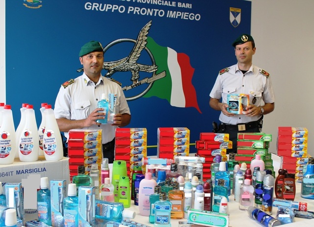 La Guardia di finanza di Bari (Gruppo pronto impiego) ha portato a termine una importante operazione di servizio a tutela del marchio e della salute dei consumatori, con il sequestro di ben 244 mila pezzi tra dentifrici, collutori, deodoranti ed altro.