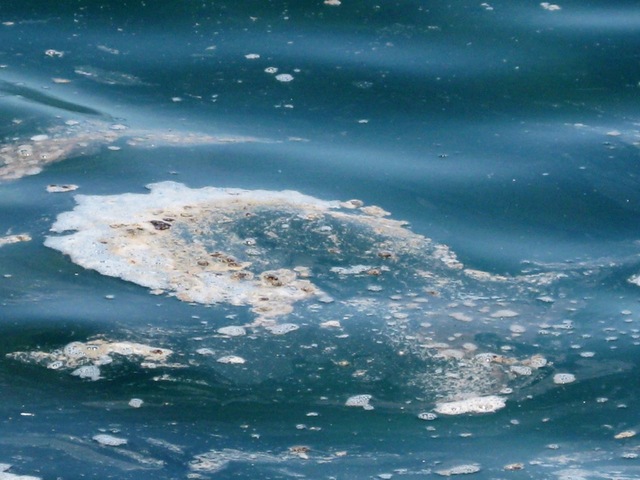 La chiazza si è progressivamente ampliata ed allungata, avanzando inarrestabilmente verso riva ed ammassandosi sotto gli occhi di bagnanti quasi rassegnati a subire passivamente questo sconcio. E così, altro giro altra corsa, il problema si ripresenta più che mai irrisolto. Anzi, mai la schiuma ci è parso avesse osato fino a tanto.