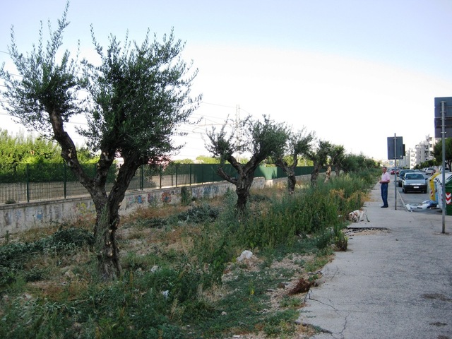 Gli ulivi furono espiantati, ad aprile 2011, da un terreno in cui si stava realizzando un impianto fotovoltaico. Il privato aveva deciso di concordare con il Comune la messa a dimora proprio lungo lo stradone che fiancheggia ferrovia ed ospedale. Gli alberi, quindi, avrebbero dovuto costituire l’elemento di pregio del viale. In realtà a distanza di oltre un anno, le cose non sarebbero andate proprio come previsto: scarsa manutenzione ed alta inciviltà, hanno reso gli ulivi più simili a cespugli ed il terreno circostante un covo di rovi ed immondizia.