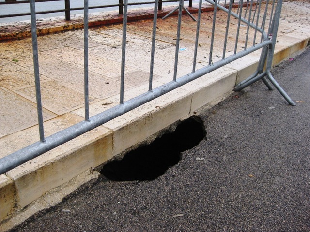 E questa volta è venuta giù un’intera porzione di strada, staccandosi dall’intersezione con il marciapiede e mostrando al pubblico una cavità profonda ed inquietante tanto quanto gli sgrottamenti che si stanno verificando nel sottostante muraglione, dove il mare batte trovando sempre più facile breccia.