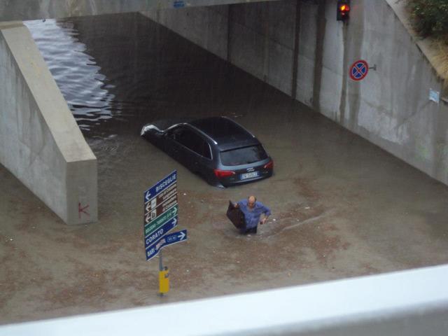 Risultato, ponte allagato con dentro il Suv di chi, a bordo del quale, si sente onnipotente e, alla luce dei fatti, si scopre impotente: la preziosa auto è rimasta dentro insieme con il suo bravo conducente.