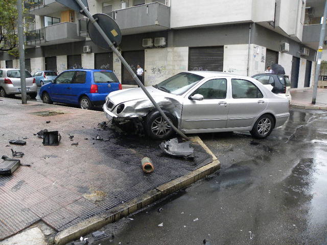 Se, invece, non vi è di mezzo la scuola, allora spunta il diavoletto della fretta o, come accaduto ieri, del maltempo. E così, come le foto gentilmente trasmesseci dal signor Raffaele documentano, ecco l’incidente, di entità tutt’altro che modesta, avvenuto intorno alle 17.30 proprio in quel punto: «La segnaletica orizzontale è scarsa – fa notare l’autore delle foto -, quella verticale inefficace perché i cartelli di pericolo sono nascosti».