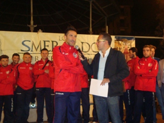 Si è svolta ieri sera, a Canosa, la presentazione alla città della squadra di calcio locale che parteciperà al campionato di Prima categoria. Fra i più acclamati, Gianmarco Frezza, capitano del Trani lo scorso anno, che con la sua esperienza nelle categorie superiori dovrebbe fare la differenza nel nuovo torneo. Il Comune di Canosa ha diffuso, fra le altre, la foto che ritrae l'ex atleta della Fortis Trani. Alcuni anni fa, a Canosa, era approdato persino Paolo Abruzzese. Ovviamente, per fare il presidente anche lì.