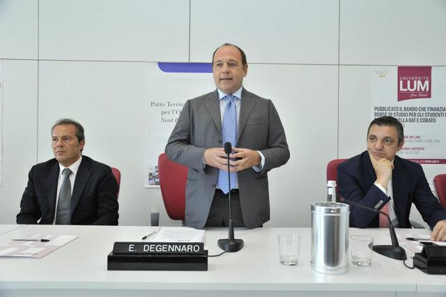 Il presidente Patto Territoriale Nord Barese Ofantino Francesco Spina ha sottolineato come la Lum “sarà un fiore all’occhiello, sostenuta anche da una classe dirigente solleticata al cambiamento. E’ un esperimento iniziato bene quello dei percorsi trasparenti e coerenti con i quali soldi pubblici e privati si canalizzano in un modello vincente di cultura a vantaggio dell’intera società. Un modello nato in maniera eticamente corretta senza assecondare metodi clientelari per cambiare volto al territorio. Il Patto Territoriale -ha proseguito- ha messo a punto questo bando che mira ad incentivare i giovani secondo i criteri di meritocrazia e solidarietà, aiutando i meno abbienti a concludere egregiamente il proprio percorso formativo. C'è un territorio che risponde con autorevolezza al bisogno sempre più avvertito di eticità nella politica, tra esempi degradanti come gli episodi di questi giorni nella Regione Lazio, dove il danaro pubblico si sperpera senza coscienza. Ebbene, qui abbiamo voluto seguire principi di trasparenza e meritocrazia e le risorse le spendiamo per i giovani ed il loro futuro”.