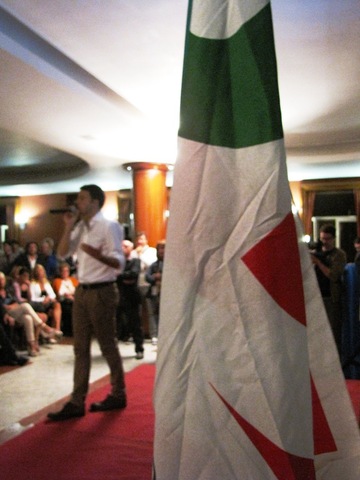 Domenico Catania, coordinatore del comitato tranese pro-Renzi annuncia l'inizio dell'incontro. Si parte con l'elogio evangelico dei fanciulli presenti in sala, scrosciano gli applausi.