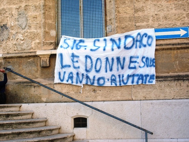 Una protesta è in corso di svolgimento dinanzi all’ingresso della casa comunale da parte di alcune donne alla disperata ricerca di un lavoro: hanno esposto degli striscioni ed una si è anche ammanettata ad un corrimano.