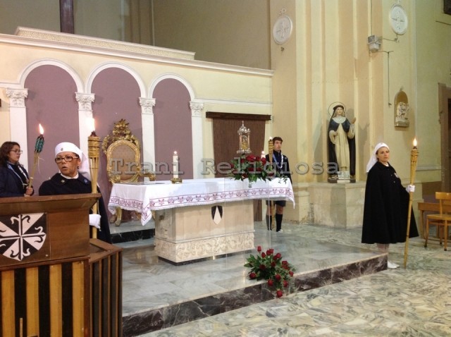 Ieri sera nella chiesa di Santa Maria delle Grazie di Trani, è arrivata la Sacra Spina di Andria in pellegrinaggio. Le reliquie, al termine della Santa Messa, sono state trasferite con corteo processionale, nella chiesa di San Domenico dove è presente la copia della Sacra Sindone in dimensioni pari all'originale. A seguire il filmato e alcuni scatti dei momenti salienti della serata tratti dal blog Trani Religiosa, del nostro collaboratore Nicola Caputo.