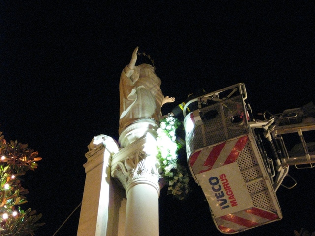 Questa sera, alle 19.15, in piazza Libertà, si terrà la cerimonia del tradizionale omaggio floreale all’obelisco della Madonna Immacolata. Un operatore dei Vigili del fuoco, tramite carrello elevatore, raggiungerà l’effige che sormonta la piazza cingendola con una corona. Ai piedi della Vergine, Mons. Giovan Battista Pichierri guiderà un momento comunitario di preghiera e festa con i bambini. Sarà presente anche il sindaco, Gigi Riserbato.