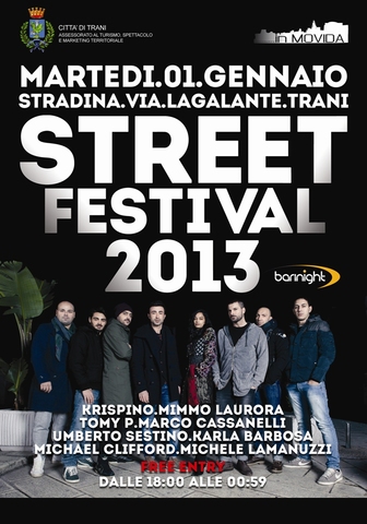 Si terrà martedì prossimo, 1mo gennaio, in via Lagalante dalle 18 alle 0.59, la quarta edizione dello “Street festival”, spettacolo danzante con alcuni dei migliori dj del territorio nato proprio in occasione del capodanno 2012 e replicato con successo per due volte la scorsa estate.