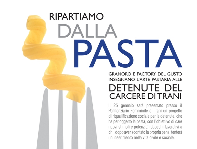 “Ripartiamo dalla Pasta” è il nome del progetto che sarà presentato venerdì 25 gennaio a Trani, presso il Penitenziario Femminile (in Piazza Plebiscito 18), che sarà riservato a 10 detenute. Il progetto avrà la finalità di formare le detenute sul processo di lavorazione industriale della pasta secca di semola di grano duro nell’ottica finale di far comprendere le caratteristiche intrinseche del prodotto per una migliore rielaborazione dello stesso nel momento della sua preparazione. Inoltre avrà l’obiettivo di creare formazione specializzata in campo alimentare, migliorare l’autostima e l’immagine di sé, individuale e di gruppo, costruire una conoscenza accademica più approfondita intorno al tema dell’alimentazione.