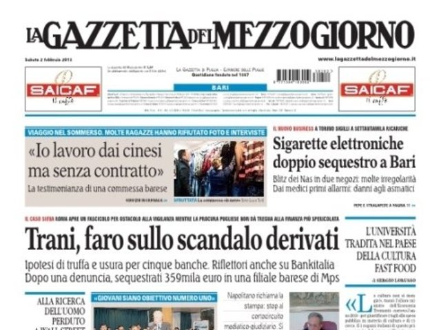 È di nuovo all'opera in città un truffatore che chiede soldi in cambio di pubblicità sulla Gazzetta del mezzogiorno. A riferirlo è lo stesso quotidiano, stamani, nella prima pagina dell’edizione Nord barese.