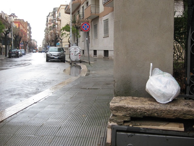 E che, purtroppo, non è l’unico. Sulla rampa d’accesso alla strada statale 16 bis, allo svincolo “Trani centro”, da anni sono presenti buste che alcuni automobilisti gettano dai veicoli lungo la corsia di accelerazione. Recentemente, poi, abbiamo sollevato il vergognoso caso di via Malcangi e del cassonetto trasferito da un marciapiede all'altro, in assenza del quale i condomini del palazzo di riferimento abbandonano tuttora i sacchetti per strada.