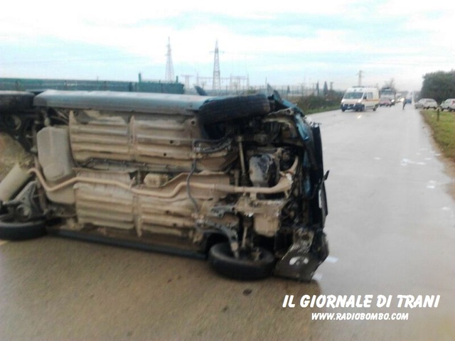 Brutto incidente stamane sulla Trani-Andria intorno alle 9.15 per un automobilista (un tranese di 20-25 anni) che, perdendo il controllo della propria vettura (una Fiat 600), si è schiantato contro un muretto e poi si è ribaltato con il mezzo che è poi rimasto coricato su un fianco. Tra le cause probabilmente le condizioni dell'asfalto molto scivoloso e fangoso.