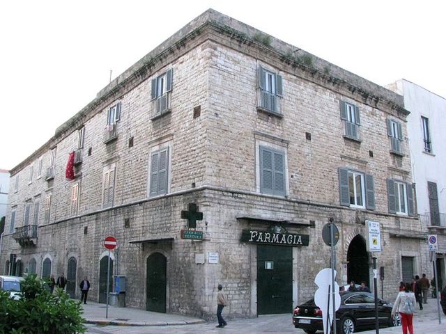 Di notevole interesse storico e architettonico è il quattrocentesco palazzo Palagano, con bellissimo portale, uno tra i più antichi di Trani. Costruito dal condottiero Pietro Palagano, al quale è intitolata un'altra strada, fu poi ceduto agli Stanga; poi fu dei Festa, tra i quali Domenico, uditore di Rota del Duca d'Andria; Maria Festa, che qui esercitò la professione legale; Filippo Festa, scrittore ed avvocato, Lorenzo Festa-Campanile. Dal 1870 passò ai Lambert.
