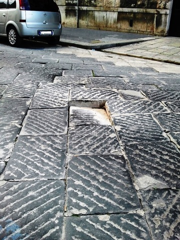 Il lettore che ci ha inviato questa foto tramite la sezione "Segnalo a Radiobombo" della nostra applicazione, si chiedeva il perché l'amministrazione non fosse ancora intervenuta per la riparazione "nonostante fosse passato già un mese da quando la basola è in quelle condizioni". Questa volta, ci dispiace deludere il nostro lettore, ma i tempi sono molto più lunghi: la situazione è la stessa, anzi, è peggiorata dallo scorso 18 gennaio (ed oltre).