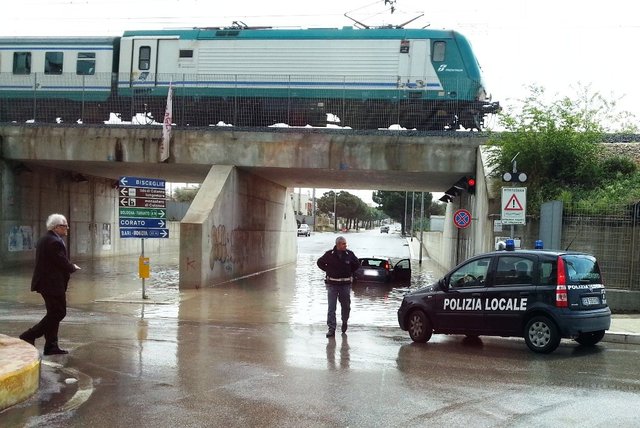Dopo avere «scampato il pericolo», si fa per dire, nel corso del pomeriggio di ieri, questa volta per il sottopasso ferroviario di via Pozzo piano non c'è stato nulla da fare. Infatti, dopo la copiosa pioggia che ha interessato Trani tra le 13 e le 13.30, la strada al di sotto del ponte si è allagata e, puntualmente, un'auto vi è rimasta dentro intrappolata e nell’attesa del soccorso stradale per la rimozione.