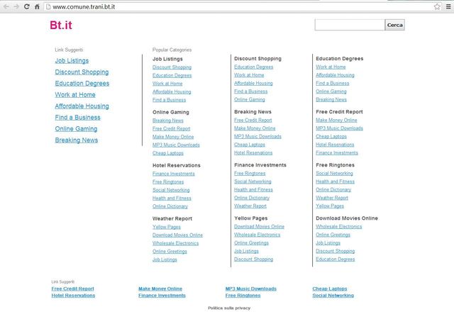 Da questa mattina il sito istituzionale del comune di Trani è "off line" ed al suo punto vi è una pagina che vi aiuterà a scegliere come scaricare Mp3, Job Listing, Make Money Online, Work at home e tanto altro ancora.