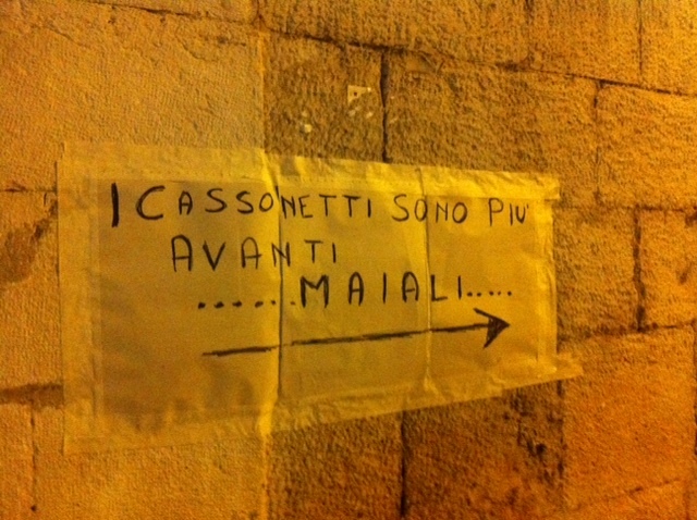 Il paracarro quindi, che in antichità serviva per proteggere gli angoli dei palazzi dai mezzi di trasporto, oggi è divenuto invece un compagno di rifiuti per tanti cartoni e buste dei più svariati colori. Un cittadino stanco si è munito di carta, scotch e pennarello ed ha indicato agli incivili la direzione per trovare più facilmente i cassonetti.