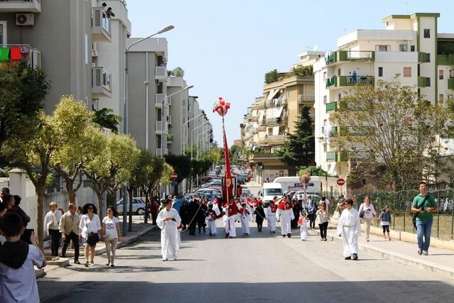 Il sacro legno è giunto in porto poco prima delle 12.30 a bordo del caicco “Queen south II”, a devozione della società tranese “Blue sailing green”. Da lì è partita la solenne processione eucaristica, presenti l’arcivescovo, Mons. Giovan Battista Pichierri, il Capitolo cattedrale, il clero cittadino, le autorità militari e civili. La processione ha raggiunto alle 14.30 la chiesa parrocchiale dello Spirito Santo, dove il Crocifisso rimarrà esposto alla venerazione dei fedeli fino al prossimo 9 maggio.