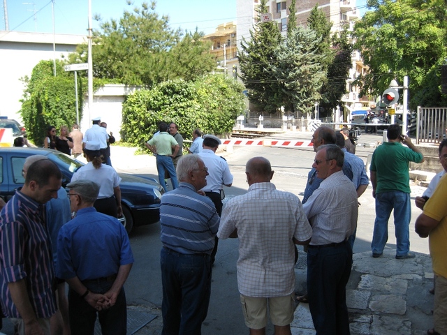 Purtroppo, Rfi ignorava che ieri, a Trani, era festa patronale. Per questo, intorno al passaggio a livello, ben presto si formava una calca di persone a piedi, insieme con le solite auto, che volevano dirigersi verso il porto per salutare l’arrivo del Crocifisso di Colonna.