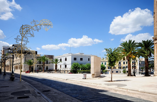Già nominata "Largo Antonacci" - "Piazza del porto" - "Piazza Arsenale". È delimitata da via Statuti Marittimi, via San Giorgio e via S. Maria. Nel gergo dialettale si indica con "Saup'a Palumme", con riferimento ai nobili Palumbo, che fecero costruire il maestoso palazzo poi passato ai Quercia.