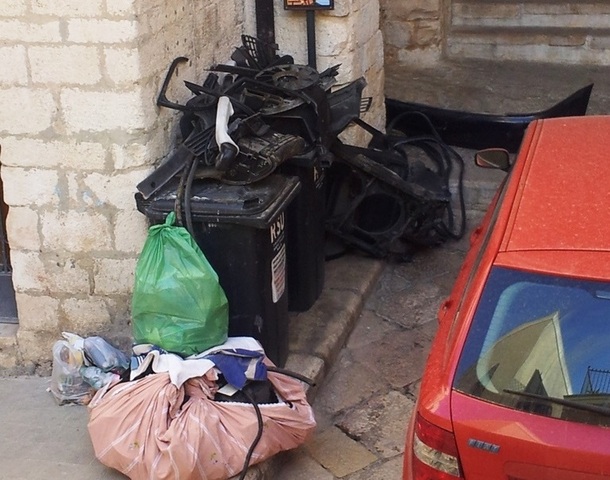 Il caso di via Raguseo sembra, in confronto, roba da nulla. Basti guardare, infatti, le immagini provenienti da via la Giudea, in pieno centro storico, dove un anfratto nel quale sono stati posizionati alcuni piccoli cassonetti per la raccolta differenziata è stato utilizzato da qualcuno per depositare rottami d'auto, come documentano senza ombra di dubbio le foto inviateci da un cittadino.