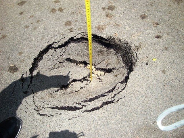 La buca, o piccola voragine, in questo momento non è in alcun modo transennata, né segnalata. Pertanto, pertanto potrebbe essere foriera di problemi sia per il traffico automobilistico, sia per la pubblica incolumità.