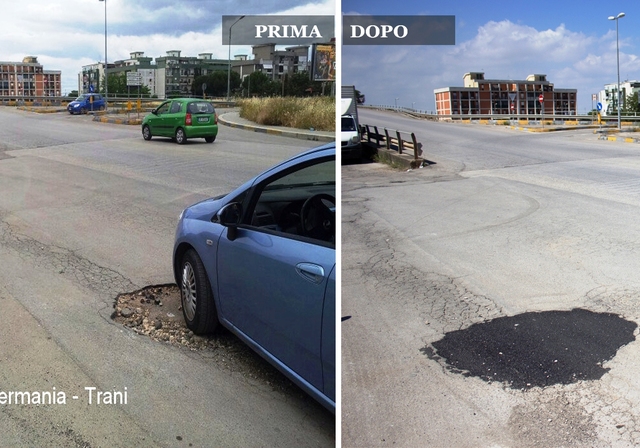Una decina di giorni fa Trani Civica segnalò il problema “buche” che tormentava i condomini di Viale Germania e Largo Romania e che costituiva un rischio per tutti coloro che si trovavano in presenza di questi “crateri”. A distanza di pochi giorni siamo tornati sul posto e abbiamo constatato con grande soddisfazione che quelle “voragini” tanto pericolose ed inguardabili sono state “coperte” e sistemate in modo da evitare ulteriori danni.