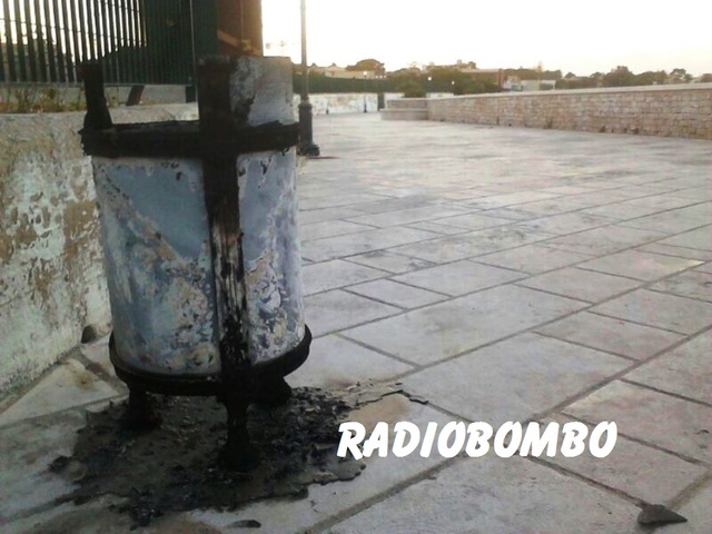Nel frattempo siamo andati sul posto per un sopralluogo ed abbiamo notato che qualche buontempone ha pensato bene di incendiare immondizia e relativo bidone regalando alla città e ai turisti il "belvedere" che abbiamo postato come copertina.