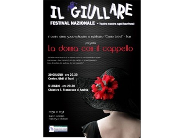 Lo spettacolo andrà in scena alle ore 20.30 di domenica 30 giugno presso il Centro Jobel e l’ingresso, così come per tutti gli eventi del Festival, è gratuito. “La donna con il cappello” sarà replicato nel Chiostro S. Francesco di Andria il giorno 5 luglio alle ore 20.30.