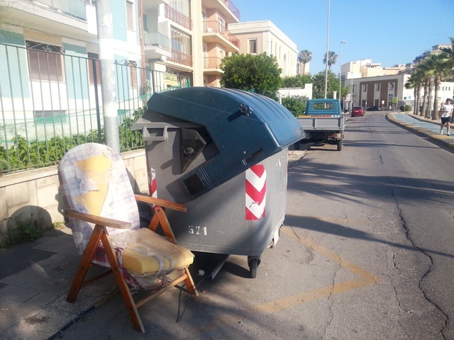 Purtroppo, però, il conoscenza di tale iniziativa non sembra uniforme in tutta la città. E forse non è neanche questione di scarsa informazione, ma di totale insensibilità al bene comune. E così, paradossalmente, non solo c’è chi, evidentemente, non è interessato né ai materassini, né ai racchettoni, ma decide persino di restituire all’Amiu, si fa per dire, una bella sedia sdraio.