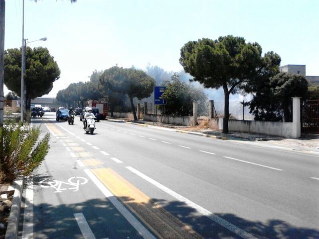 Un incendio è divampato della tarda mattinata fra via Martiri di Palermo e via Verdi, in un vasto appezzamento di terreno compreso fra le due strade. Una densa colonna di fumo, prevalentemente nero, si è alzata determinando grossi problemi di visibilità anche sulla strada statale 16bis, all’altezza dello svincolo «Trani sud».