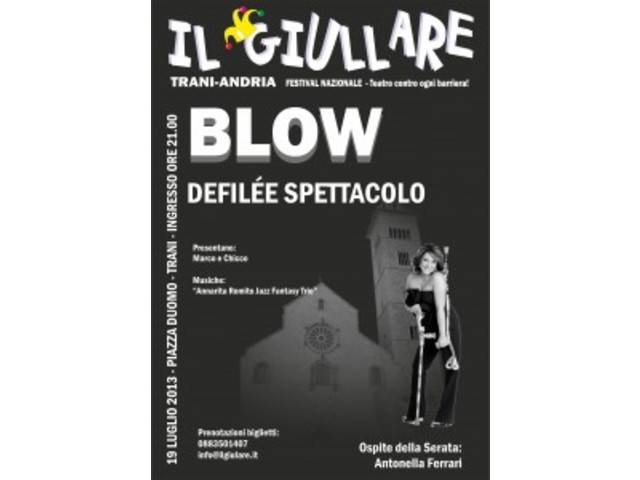 La serata si intitola “Blow”, ed il Giullare si affida a questo soffio per raccontare con delicatezza ed ironia, musica e colori, la straordinaria forza della bellezza. La serata sarà condotta da Marco e Chicco il duo comico che ha ancora una volta accettato di condividere con Il Giullare un altro evento al servizio della cultura e della socialità.