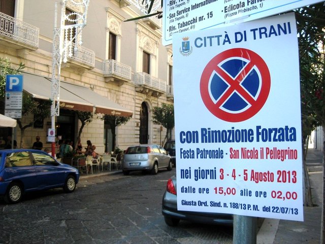 Arriva la festa patronale di San Nicola Pellegrino ed il porto, nonché tutte le aree circostanti (anche via Cavour poiché interessata dalle bancarelle) chiudono al traffico decisamente prima: la grande area pedonale, infatti, sarà vigente dalle 15 alle 2 fino a lunedì prossimo.