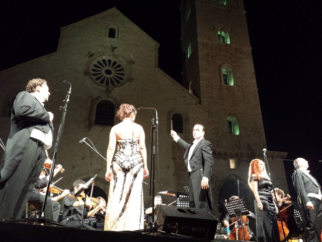 Performance impeccabile, ieri sera, dell'orchestra e coro "L'opera", di Bari, egregiamente diretta da Elio Orciuolo, affermata bacchetta tranese che, sempre in viaggio per il mondo, per la seconda estate consecutiva è tornato sul podio all'ombra della cattedrale della sua città natale per deliziare il pubblico che ha gremito piazza Duomo con due piacevoli ore di concerto.