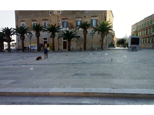 In confronto a quanto rimase dopo «Battiti live», sembra quasi robetta, ma, ancora una volta non sembra questo il miglior modo di lasciare una piazza al termine di una manifestazione e riconsegnarla così la mattina successiva a chi di quella manifestazione non sapeva nulla e avrebbe avuto diritto a trovare la città nelle condizioni minime di decenza.