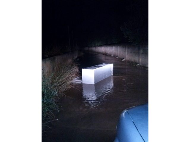 La prima foto che vi mostriamo è quella di un frigorifero che viaggia a velocità crociera in contrada Monte d'Alba. Questa strada, non asfaltata e piena di buche, durante delle abbondanti piogge si trasforma in una piscina e crea non pochi problemi di "collegamento" con il mondo civile per i residenti. Non è poi così tanto normale che un frigorifero venga abbandonato per strada ma non è altrettanto normale che lo stesso debba "navigare" su decine di centimetri d'acqua.