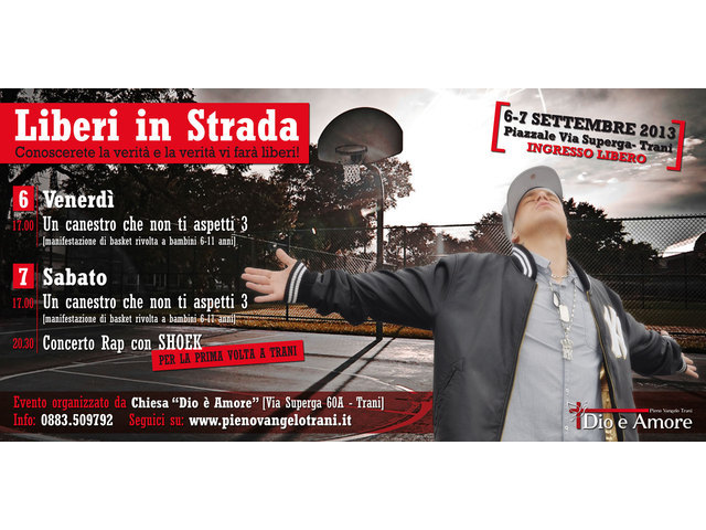 Il secondo: dare l’opportunità di conoscere quella Verità che non fa più essere schiavi della vita in strada, ma rende realmente liberi pur vivendo in essa. Ciò sarà testimoniato dal cantante Rap cristiano Shoek, durante la sua performance.