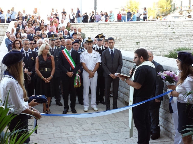 Prima di lei, aveva impartito la benedizione don Francesco Lanotte, parroco della chiesa di San Giovanni. A seguire, sono giunte le allocuzioni della già citata Margherita Pasquale, del presidente della sezione di Trani dell’Associazione nazionale marinai d'Italia, Nunzio Grande, dell’assessore alla cultura, Salvatore Nardò, del Capitano di fregata, Francesco Maugeri, e del sindaco di Trani, Gigi Riserbato.