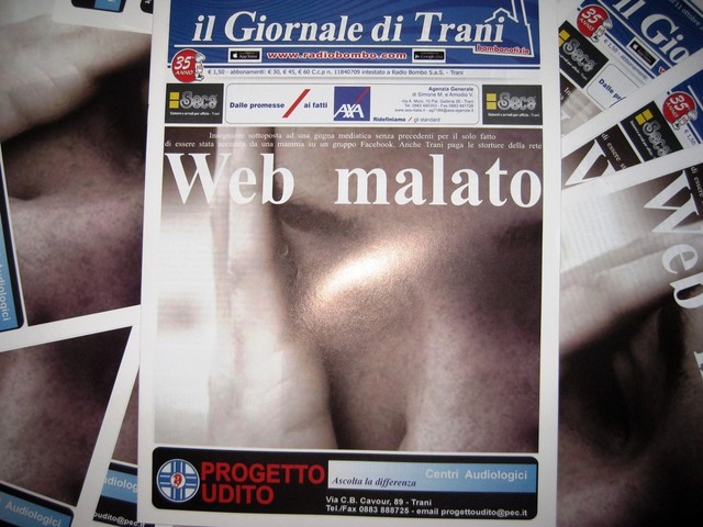 Torna in edicola Il Giornale di Trani con il numero 18 ed una prima pagina dedicata all'insegnante sottoposta ad una gogna mediatica per il solo fatto di essere stata accusata da una mamma su un gruppo Facebook: "Web Malato".
