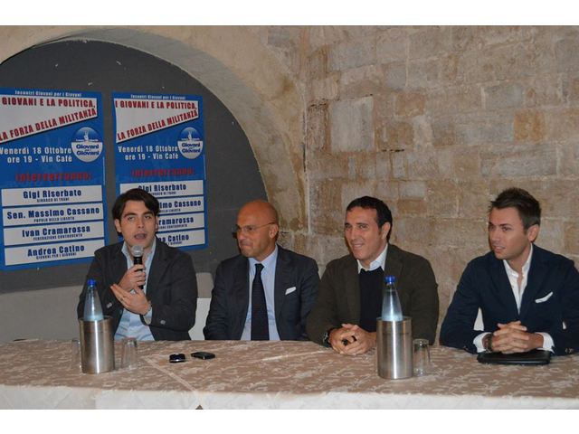 "Tanta passione e tanti giovani per poter avviare quel tanto auspicato rinnovamento politico." Questo è quanto emerso dall'incontro dal tema "I Giovani e la Politica, la forza della militanza" organizzato da Giovani per i Giovani Trani in collaborazione con la Federazione Controvento a cui hanno partecipato il Senatore Massimo Cassano, il Sindaco di Trani Gigi Riserbato, il Presidente dei Giovani per i Giovani Andrea Catino e Ivan Cramarossa coordinatore della Federazione Controvento.