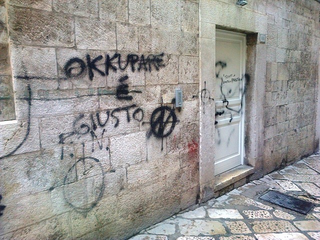 «Okkupare», per dirla con i grafomani, è discutibile. Imbrattare è, semplicemente, perseguibile. Ci si augura di individuare i responsabili delle scritte su muri e porta d’ingresso del nuovo centro di aggregazione giovanile «You and me», che ha sede in via Nigrò e che a, giorni, si sarebbe dovuto ufficialmente inaugurare. Probabilmente, anche e soprattutto a causa di questi episodi di teppismo, l'appuntamento con il taglio del nastro sarà ha rinviato fino a quando non si sarà ripulita ogni cosa.