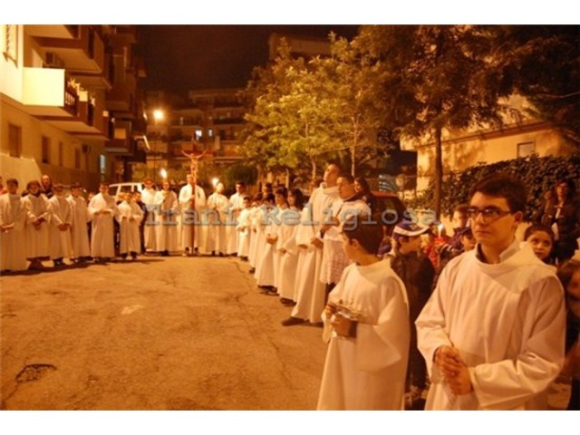 "Ho vinto la mia scommessa personale contro il tempo (atmosferico)": queste le ultime parole del parrocco Don Mimmo Maria Capone a conclusione della fiaccolata in onore di San Giuseppe Moscati. Il corteo di preghiera ha percorso le vie del quartiere di pozzo piano nella quale si trova il Nuovo Templio dello Spirito Santo e si è soffermato brevemente nella via dedicata al santo medico.