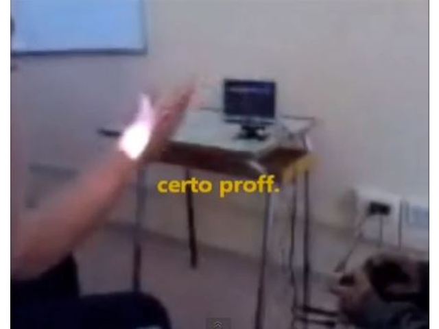 I sottotitoli, sgrammaticati, ironizzano sulla presenza dei professori mentre alcuni alunni allestiscono e giocano con consolle montate in classe: Play Station, Ps2, Ps3 e poi... «aspettate un mese e porterò la Ps4, non voglio rischiare perché la Ps2 me l'hanno sequestrata ma io non mi arrendo».
