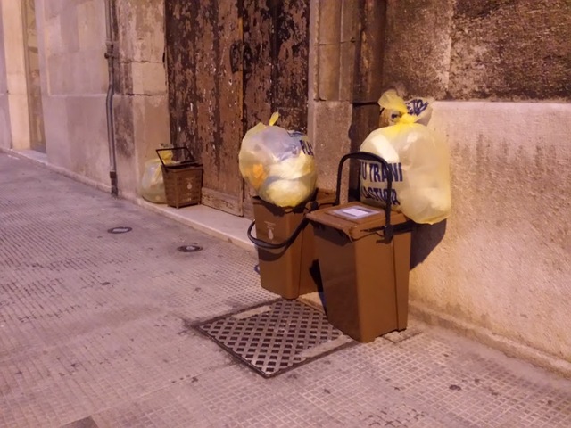 Questa mattina, all'esterno dei portoni, si sono scorti i bidoncini dell'umido ed alcune buste delle altre tipologie di rifiuti che saranno raccolti due volte a settimana. Molti condomini, peraltro, hanno ricacciato fuori dei portoni i bidoncini più grandi che, evidentemente, non sono stati graditi o sono parsi incompatibili rispetto agli spazi comuni di alcuni fabbricati.